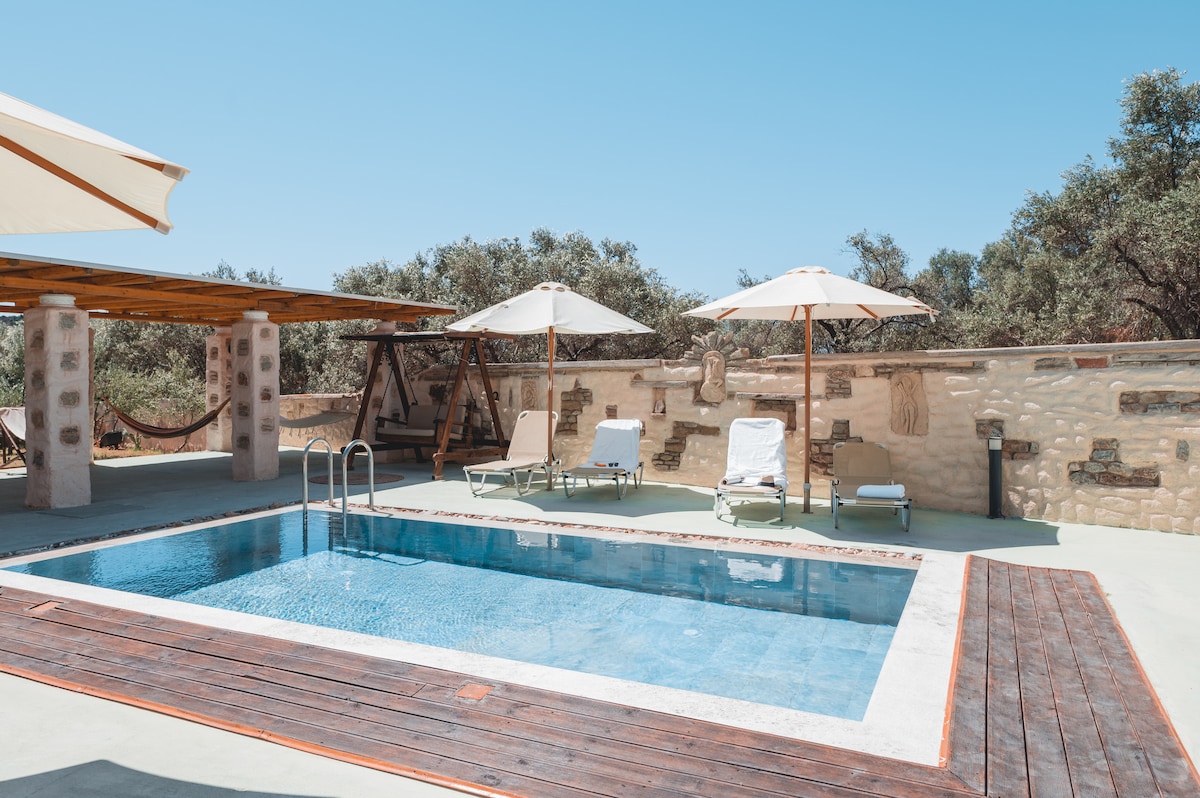 Tervetuloa tähän poikkeukselliseen huvilaan, joka sijaitsee seesteisten oliivilehtojen keskellä. Tutustu käsintehtyjen kiviseinien tekstuuriin ja ihaile räätälöityä sisustusta. Kokoonnu grilliruoan ympärille ja nauti ikimuistoisista perheaterioista, samalla kun lapset tutustuvat vehreään puutarhaan, virkistäytyvät kuohuviin uima-altaassa tai rentoutuvat rakkaiden kanssa tilavalla patiolla, joka on ihanteellinen ystäväryhmille. Täydellisellä paikalla, muutaman minuutin päässä vilkkaasta Falirakista ja parhaista rannoista, tämä retriitti tarjoaa ihanteellisen rauhallisen pakopaikan. Varaa nyt ja nauti todella unohtumattomasta elämyksestä!