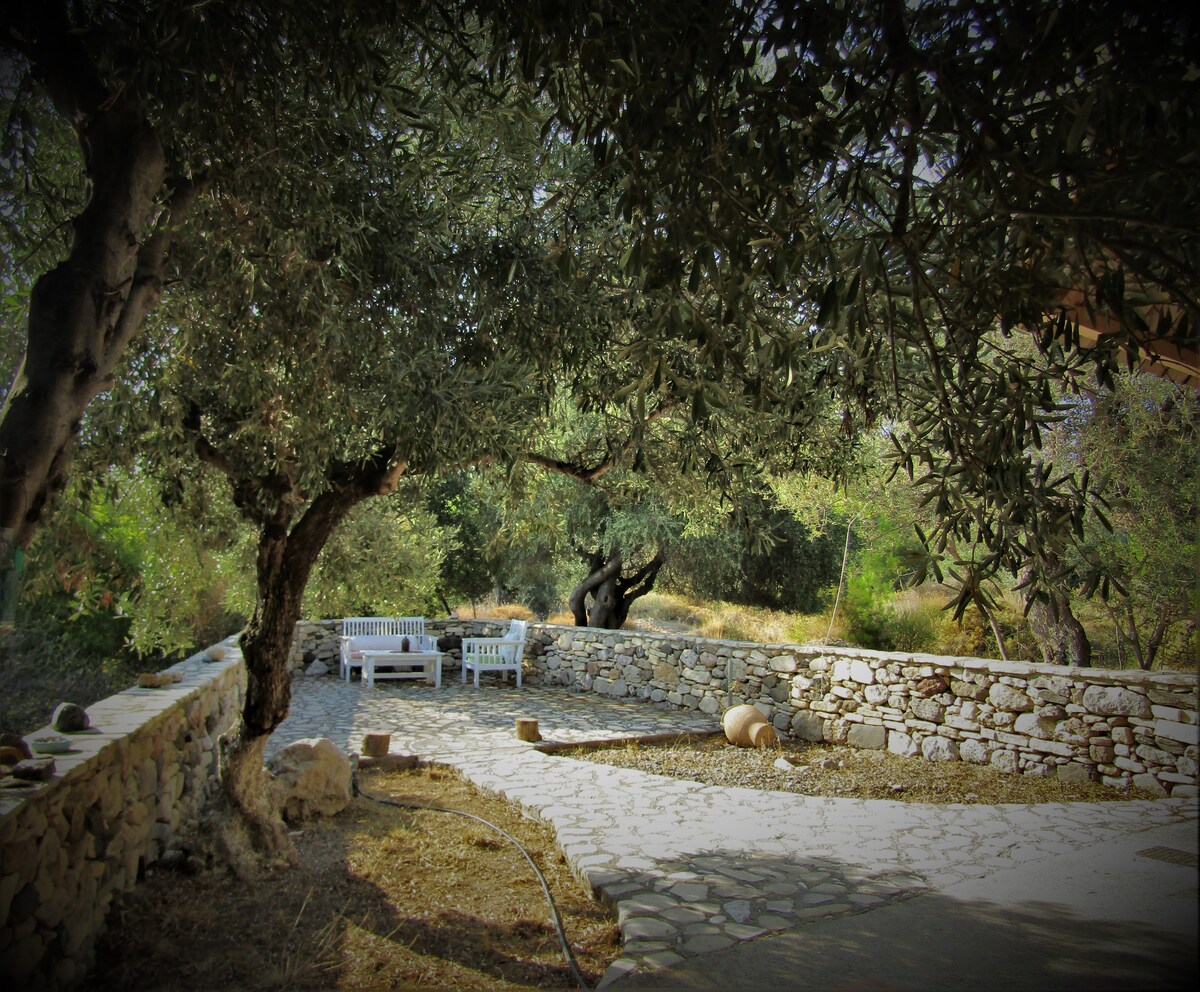 A quietcation for slow living, just moments from the sea, far from the crowds. Once home to the legendary Captain June, Mastic Tree House is a restored hilltop eco haven where timeless character meets modern comfort. Wake up to breathtaking Aegean sea views and enjoy your morning coffee on a large terrace overlooking the waters where two seas meet. Nestled in a rare multicultural village where wanderers, artists, and locals live side by side, it offers a peaceful retreat in a safe community.