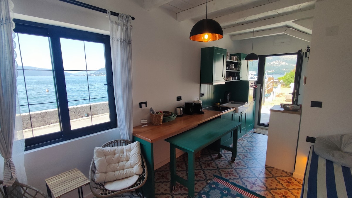 Tämä rantakivitalo rakennettiin alun perin 1800-luvulla ja peruskorjattiin kokonaan vuonna 2018. Sisustus on sekoitus perinteistä Välimeren tyyliä yhdistettynä moderniin muotoiluun. Rauhallisessa vanhassa Muo-nimisessä kalastajakylässä sijaitseva talomme on täydellinen tukikohta lahden tutkimiseen. Kotorin vanha kaupunki on alle 10 minuutin ajomatkan päässä ja Tivatin lentokenttä alle 20 minuutin ajomatkan päässä. Talossa on kolme tasoa ja jokaisella tasolla on esteetön merinäköala.