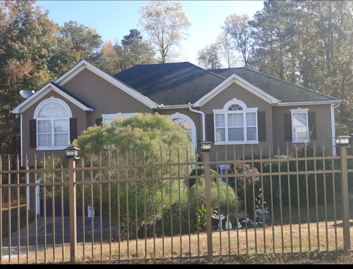 Relax with the whole family at a peaceful prestigious home in the historic city of Fairburn. The house is specially detailed to give a home away atmosphere with a southern twist. Our place is 15 minutes to the airport and 20 mins from Downtown Atlanta. The house is close proximity to city parks and shopping centers. A very quiet neighborhood with the outdoor patio space, comfortable beds and a great place for couple, solo adventurers, business travelers and visitors needing a comfortable place.