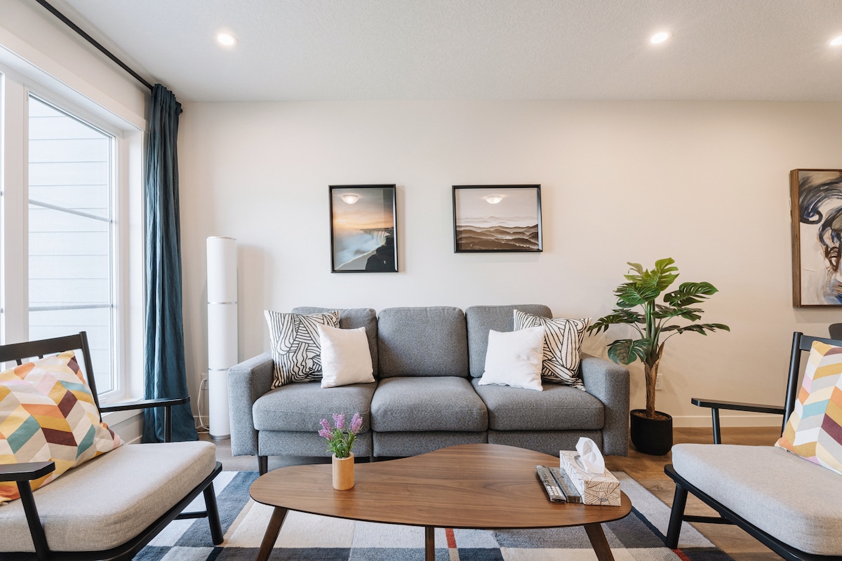 Rentoudu perheesi tai ystäviesi kanssa kauniissa, valoisassa ja modernisti sisustetussa kodissamme yhdessä Calgaryn uusista luoteisyhteisöistä, josta on helppo pääsy kaikkeen, mitä Calgarylla on tarjottavana. Kun majoitut täällä, olet lyhyen matkan päässä yhdestä Calgaryn tärkeimmistä moottoriteistä - Stoney Trail, josta on nopea pääsy: ✔ Winsport and Calgary Farmers Market (17min) Calgaryn ✔ keskusta (20 min) ✔ Calgaryn kansainvälinen lentokenttä (14 min) ✔ Banff (1 h) ja Canmore (45 min) ✔Mukavuudet ja ravintolat (2 min)