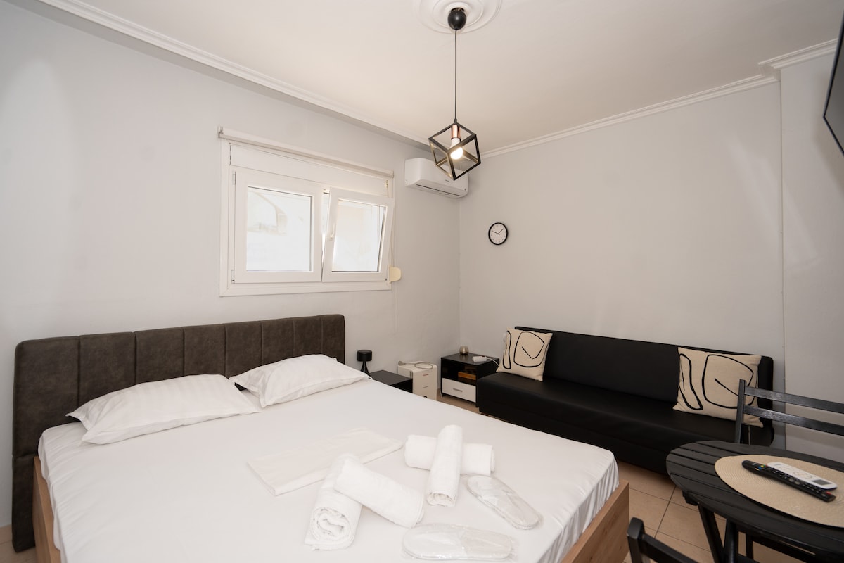 Tämä harkittu tila on täydellinen pariskunnille tai ammattilaisille, ja se tarjoaa mukavuutta ja modernia estetiikkaa. Melkein Oneiroupolisin puistosta löydät kaiken, mitä tarvitset rentouttavaan ja miellyttävään majoittumiseen. Täysin varustettu keittiö, tyylikäs kylpyhuone, takaa mukavuuden ja mukavuuden, kun taas suuret internetyhteydet ja raittiisen ilman virtausjärjestelmät tarjoavat ainutlaatuisen kokemuksen. Se on vain lyhyen matkan päässä kahviloista, ravintoloista ja nähtävyyksistä, ja se on täydellinen tukikohta draamaan tutustumiseen.