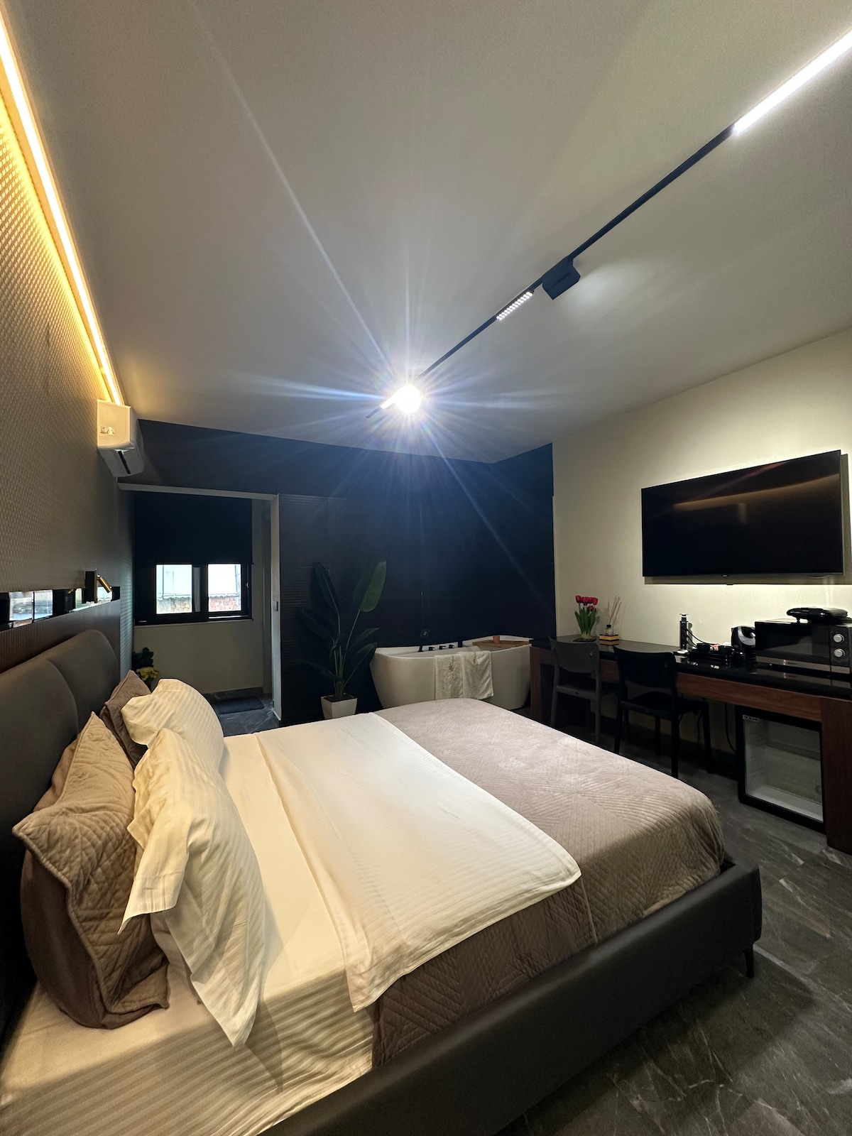 Luxe-kattohuoneisto sijaitsee uuden asuinrakennuksen kuudennessa kerroksessa, ja siellä on huippuluokan yksityisyyttä ja näkymät Tiranaan ja Dajti-vuorelle. Todella ainutlaatuinen tila, jossa on moderni skandinaavinen minimalistinen suunnittelu! Nauti ilmaisesta viinipullosta ja anna meidän tehdä majoittumisestasi miellyttävää ja mukavaa. Rentoudu porealtaassa kiireisen päivän jälkeen!