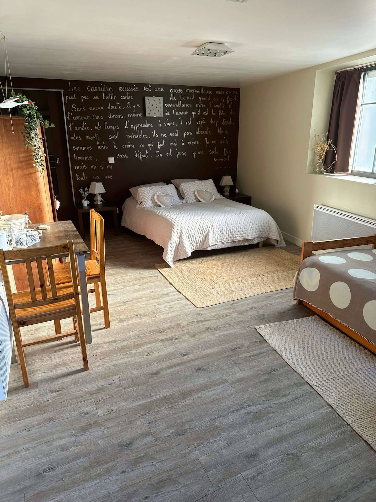 "La pause gourmande" -asunnoista (ensimmäisen loma-asuntomme) jälkeen, olemme erittäin iloisia voidessamme esitellä: "Le temps d'un rêve" (Unelman aika). Tämä kaunis, täysin kunnostettu 110 m²:n kaksikerroksinen asunto on suunniteltu tuomaan pehmeyttä ja hyvinvointia jokaiseen huoneeseen. "Turvapaikka sielulle ja aisteille. Tule ja koe unohtumaton elämys paikassa, jossa kauneus, mukavuus ja rentoutuminen kohtaavat"