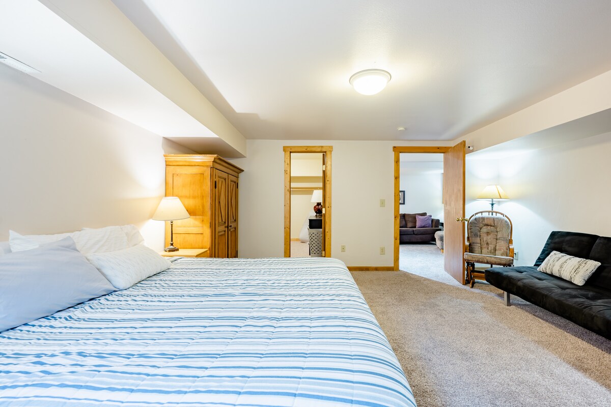 Joshilla ja minulla on moderni ja siisti alakertaan lukittava huoneisto vain 3 korttelin päässä keskustasta. Tila on kokonaan sinun, ja siellä on yksityinen sisäänkäynti ja pysäköinti. Olemme Coloradon maastopyöräily-yhteisön keskellä, ja meillä on 100 mailia yksiraitaista reittiä. Myös aivan Vailin ja Beaver Creekin lomakeskusten välisen valtatien varrella. Pelkät näkymät ovat vierailun arvoisia! Muistutus: tämä on vuoristo. Sisäänkäynti on hyvin valaistu ja aurattu, mutta suunnittele likaa ja lunta. Se kuuluu alueeseen! Lupa #006688