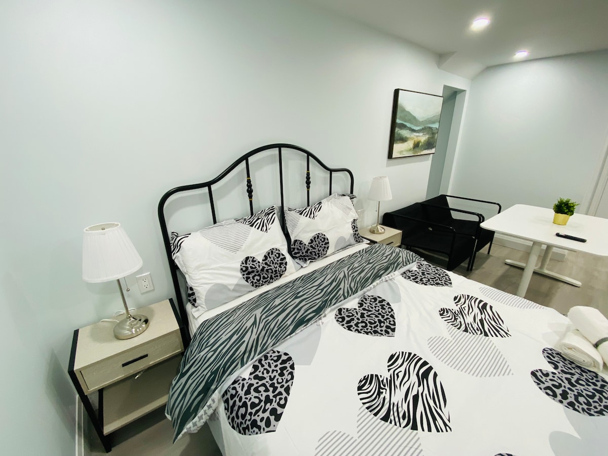 Upouusi, yksityinen, tyylikäs, suuri, puhdas ja valoisa kellarihuoneisto keskellä yläkaupungin sydämessä. * 10 minuutin kävelymatka Yonge-Shepperdin metroasemalle * 20 minuutin metromatka keskustaan * Ympärillä on hyviä ravintoloita, teattereita, viihdettä ja ruokakauppoja * Ilmainen pysäköinti * Nopea wifi * Netflix ja Amazon Prime TV * Lämmitetty lattia * 13 jalan korkuinen katto * Yksityinen kodinhoitohuone * Mukava queen-vuode ja vuodesohva. Majoittaa 4 aikuista (2 aikuista + 3 lasta) * Kaunis uusi keittiö * Upouusi ja kimmeltävä kylpyhuone