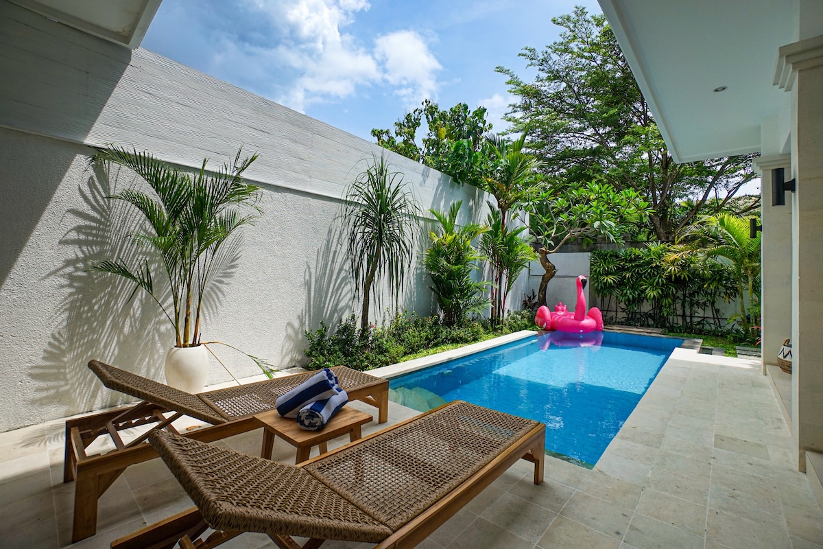 Welcome to our newest 'Cintaku Villas' abode in the heart of Seminyak where modern living meets tropical haven perfectly positioned just metres from the vibrant Double Six Beach! Super close to top Bali cafes, boutiques, and sunset spots. This stunning three-bedroom villa features bright, sun-filled living spaces, a sparkling private pool, and lush tropical gardens. Each bedroom offers its own beautiful en-suite for ultimate privacy and comfort plus washing machine! Relax and unwind!