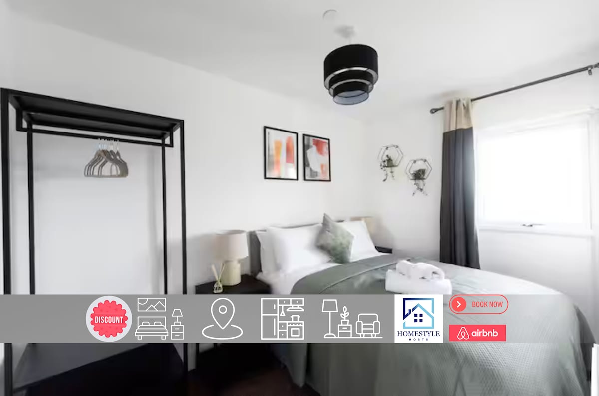 Ihana valoisa ja tilava huoneisto, jossa on yksi UK-kokoinen parisänky. Kaupungin keskustan sydämessä, lähellä kauppoja ja ravintoloita. Lutonin lentokenttä - 11 minuuttia junalla; autolla 20/30 min. Huoneisto sisältää suuren oleskelutilan, jossa on keittiö ja ruokapöytä, kylpyhuone ja makuuhuone, jossa on Yhdistyneen kuningaskunnan king-size-vuode. Ilmainen pysäköinti saatavilla varatussa tilassa yksityisessä pysäköintialueessa 2 minuutin päässä asunnosta. PYSÄKÖINTI ON EHDOTTOMASTI SOVITTU Huoneisto on pubin vastapäätä (suljettu syyskuusta 2025 alkaen). Meillä on kuitenkin hyvin vähän ilmoituksia melusta.