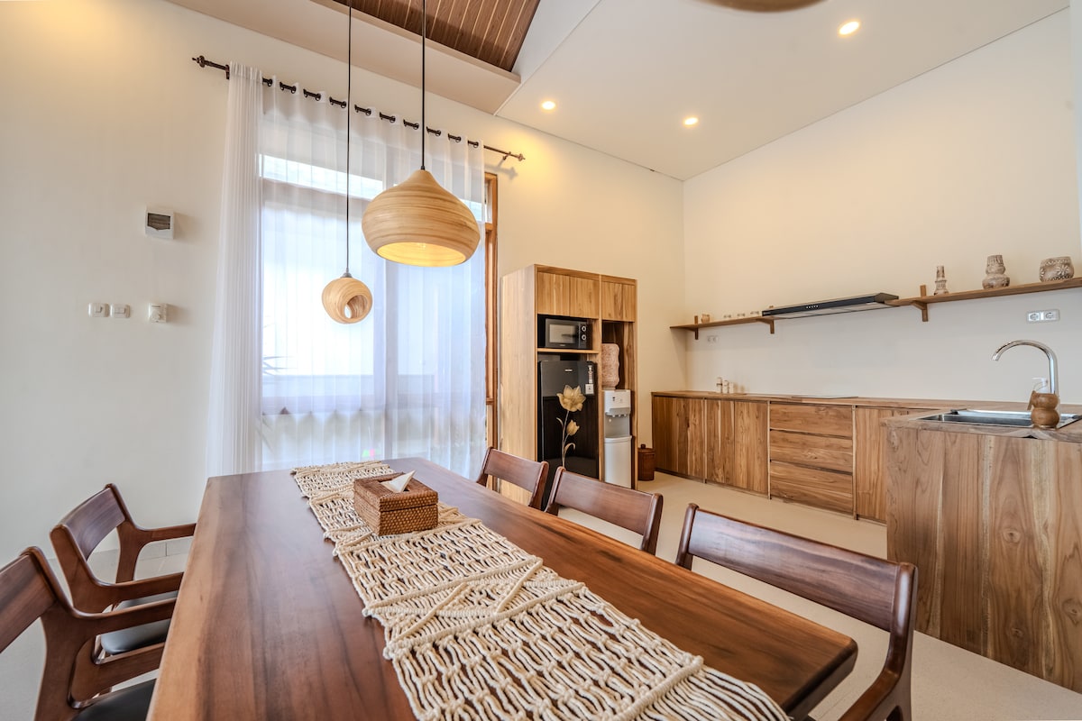 Tämä luonnolle avoin puinen huvila sijaitsee rauhallisessa Sedeoenin kylässä, ja sieltä on näkymät merelle vain 5 minuutin päässä Nemberalasta. Ravintolat ja surffauspaikat ovat kävely-, skootteri- tai jopa melontamatkan päässä! Tilava mutta kutsuva kohde on ihanteellinen pariskunnille, perheille tai pienille ryhmille, jotka etsivät rentoutumista ja saaren rauhallisuutta. Yksityinen uima-allas, suuri terassi, upea merinäkymä 🌅 🌟Erikoishinnat perustuvat majoittumisen kestoon tai ryhmän kokoon – ota meihin yhteyttä!