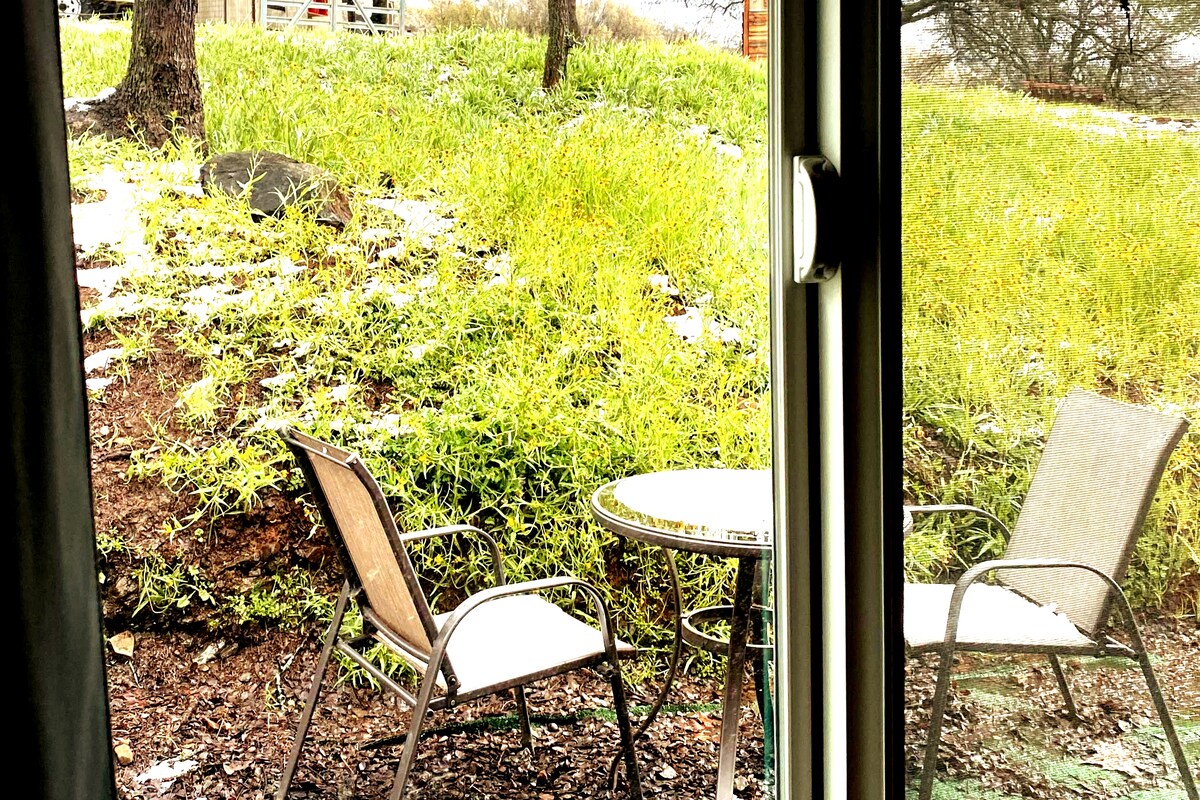 Nauti luonnon äänistä, kun majoitut tässä ainutlaatuisessa kohteessa. Majoitu Manzanita-huoneessamme muunnetussa ladossamme. Kohteessa on yksi queen-vuode, joka sopii erinomaisesti yhdelle tai kahdelle hengelle. Sisältää minijääkaapin, mikroaaltouunin ja kahvinkeittimen, jossa on kahvitarvikkeita. Ulkoruokapöytä, jossa voi oleskella. Kauniit näkymät maaseudulle. Yksinkertainen yksityinen huone, jossa on oma sisäänkäynti, suihku ja kylpyhuone. Se on yhdistetty muihin latomme huoneisiin, mutta sinulla on oma tila ja yksityisyyttä. 220 V:n pistorasia – sähköajoneuvojen taso 2.