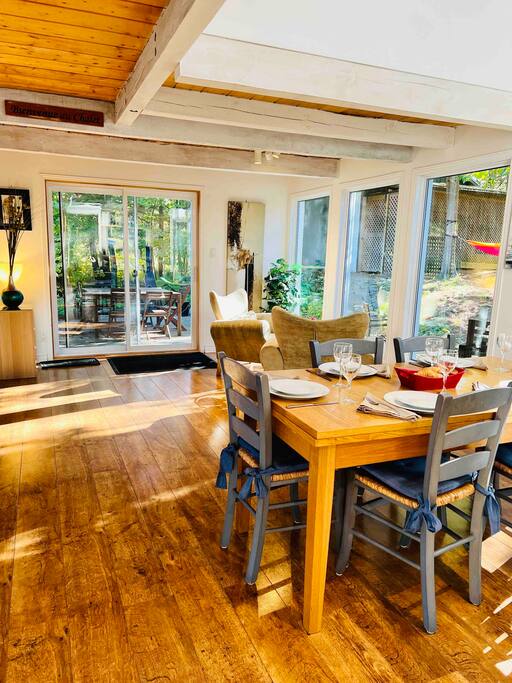 Ce chalet suisse est un endroit idéale pour décrocher de la ville, se reposer et profiter du plein air. Que ce soit pour faire de la lecture, dormir, du yoga, dessiner, prendre le thé ou jouer aux jeux de société; tout y est bien aménagé. Le terrain donne un accès direct à la rivière au sentier de marche ainsi qu'un accès privé pour un feu de joie. Là où les étoiles brillent encore plus, la belle région de Potton offre une panoplie de terrain de jeu en pleine nature. À vous de la découvrir!