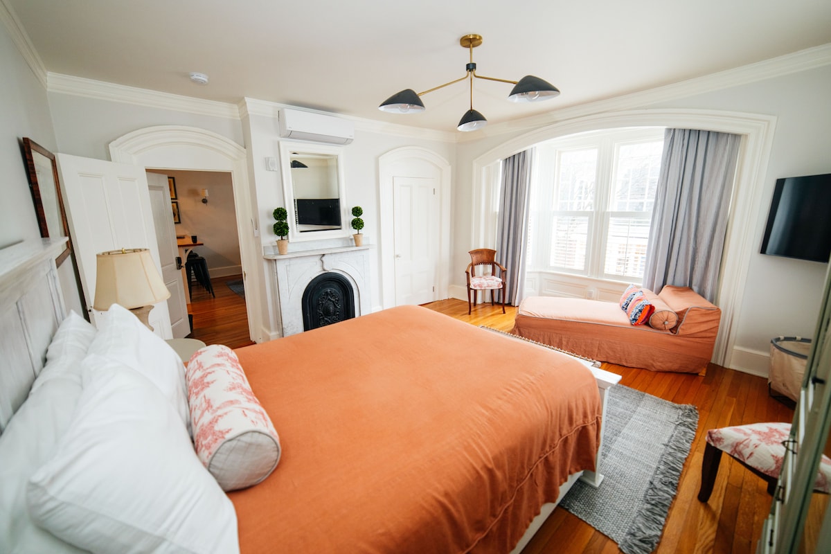 Vuonna 1881 rakennettu talomme on kävelymatkan päässä Newportin keskustasta, Cliff Walkista ja First Beachistä. Kolmannen kerroksen sviitissä on kaksi suurta makuuhuonetta (molemmat queen-vuoteet), laaja oleskelutila, yksityinen kylpyhuone ja oma keittiö. Newportin kaupunki on myöntänyt meille luvan toimia hyväksyttynä Airbnb-sivustona. Vaadimme yleensä vähintään kahden yön majoittumisen kiireisinä kesäviikonloppuina.
