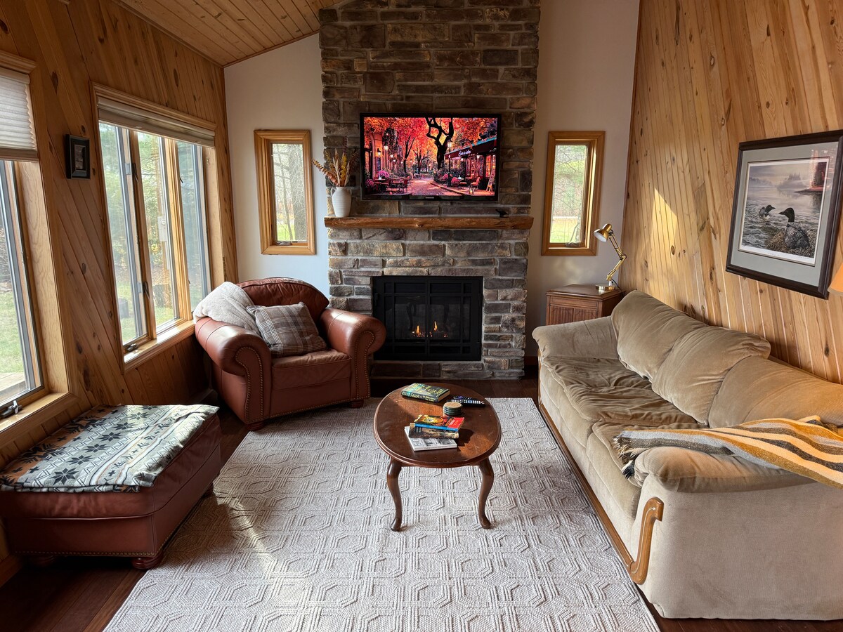 Tämä kaunis hirsitalo on vain muutaman askeleen päässä järvestä, ja siinä on 100 jalan yksityinen ranta ja suuri laiturin rentoutumiseen! Etsitpä lomakohdetta talvella, keväällä, kesällä tai syksyllä, tässä ainutlaatuisessa aarteessa on KAIKKI! Kajakki, kanootti ja suppalauta ovat käytettävissä kesällä. Luistinten käyttö sisältyy hintaan talvella. Tämä kohteen helmi on myös koiraystävällinen! Täydellinen paikka myös yritystiimien lomalle.