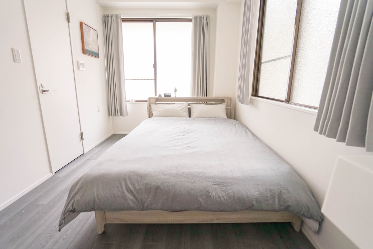 Uusi Japandi-studio, JR-asema/metroasema kävelymatkan päässä, pyykinpesukone kuivausrummulla, hissi, matkatavaroiden säilytys