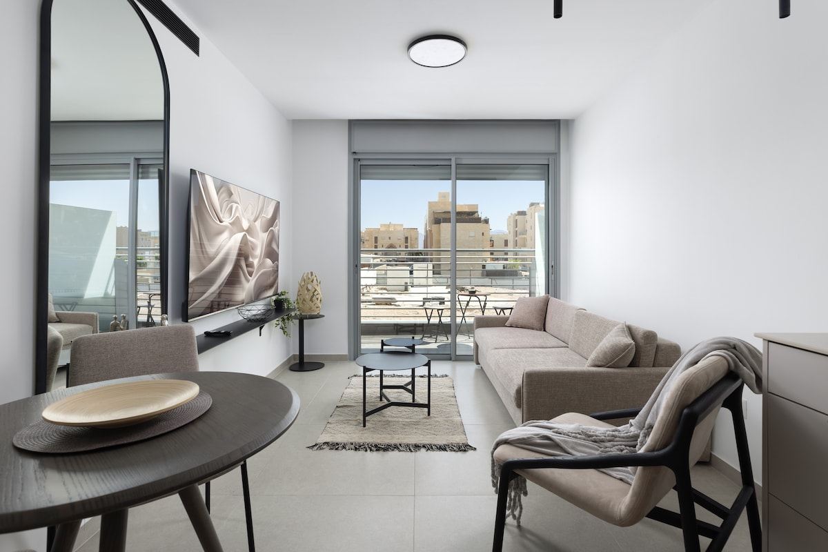 Tervetuloa täydelliseen turvasatamaasi Eilatissa! Tässä miellyttävässä ja tyylikkäässä boutique-huoneistossa on yksi makuuhuone, ja se on suunniteltu erityisesti mukavuutta ja rentoutumista varten. Huoneisto sijaitsee rauhallisessa ja halutussa Shahmonin naapurustossa, ja se tarjoaa rauhallisen majoittamiskokemuksen, josta on helppo pääsy kaikkeen, mitä Eilat tarjoaa.