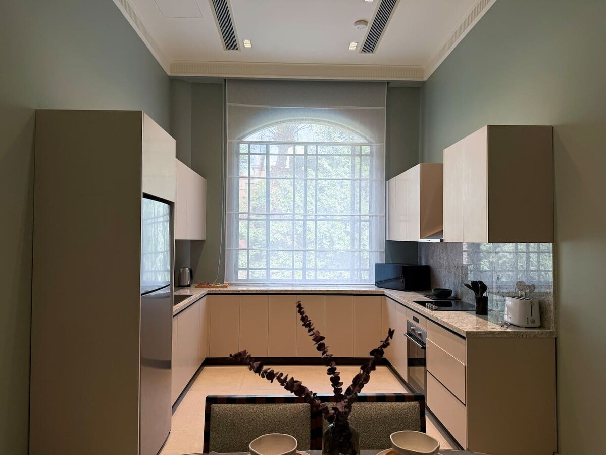 Ota rennosti tässä ainutlaatuisessa ja rauhallisessa lomakohteessa Tyylikäs klassinen huoneisto, jossa yhdistyvät ylellisyys ja mukavuus ja joka on sisustettu hienoilla antiikkiesineillä, maalatuilla paneeleilla ja tyylikkäillä maljakoilla. Siinä on kaksi makuuhuonetta (yksi päämakuuhuone, jossa on iso vuode ja kaksi erillistä vuodetta), kaksi hienosti viimeisteltyä kylpyhuonetta, tilava vastaanottoalue ja täysin varustettu keittiö. Kaikki huonekalut ovat klassisia ja luovat kodikkaan tunnelman, jossa hienostuneisuus yhdistyy arkiseen mukavuuteen, ja kohde on valmis välittömään käyttöön.