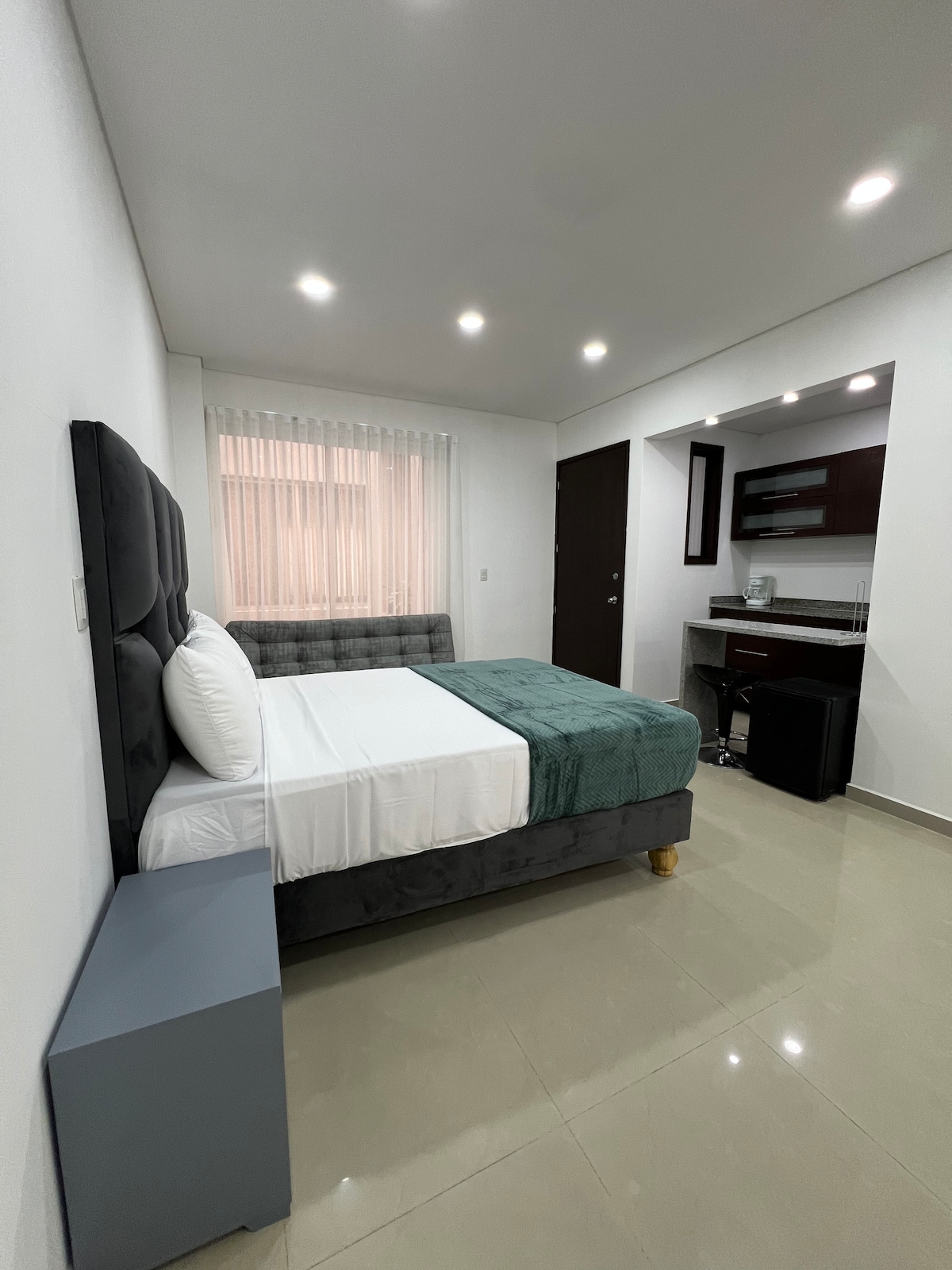 Nauti modernista studiohuoneistosta Miro Livingissä, jossa on kodikas sisustus, luonnonvaloa ja kaikki mukavuudet majoittumistasi varten. Rentoudu uima-altaalla, treenaa kuntosalilla, hoida asioita yhteiskäytössä olevassa työtilassa tai katsele auringonlaskua 360° kattoterassilta. Sijaitsee turvallisella ja strategisella alueella eteläisessä Calissa, lähellä kaikkea. Täydellinen pariskunnille, liikematkailijoille ja kaikille, jotka etsivät mukavuutta tyylikkäästi.