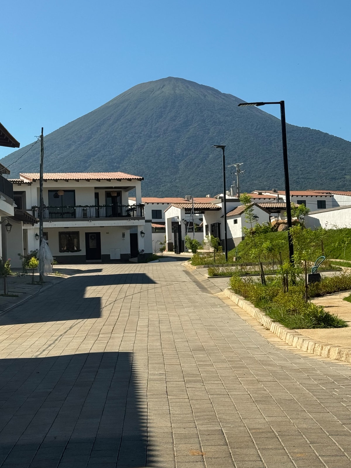 Kaunis talo ilmastoinnilla ja näkymällä tulivuorelle.