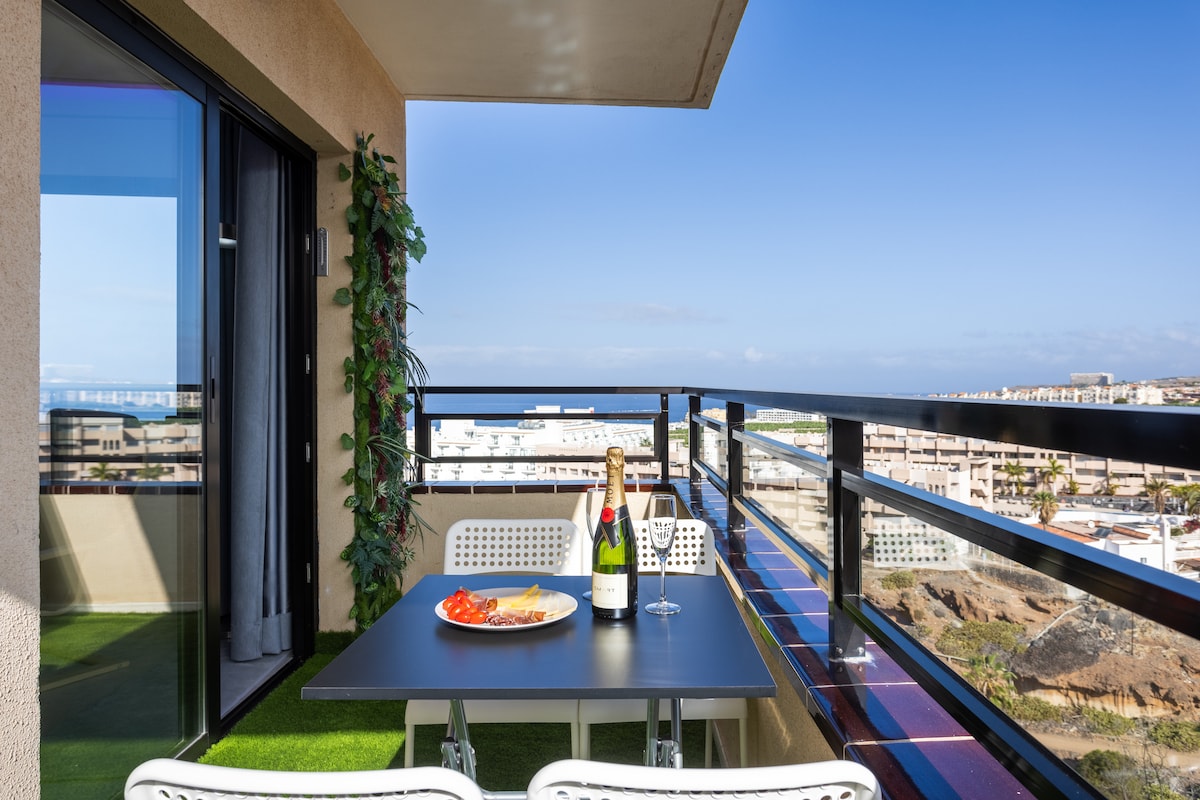 Kaunis studio Playa Paraísossa, josta on upea merinäköala La Gomeran saarelle. Täysin varustettu ja uudistettu. Uima-allas ja pääsy rannalle. Paljon baareja, ravintoloita ja supermarketteja. Uusi Hard Rock Hotel aivan edessä. HUOMIO: Uima-allas on SULJETTU kunnostustöiden vuoksi 16.6.2025 alkaen vuoden loppuun asti.