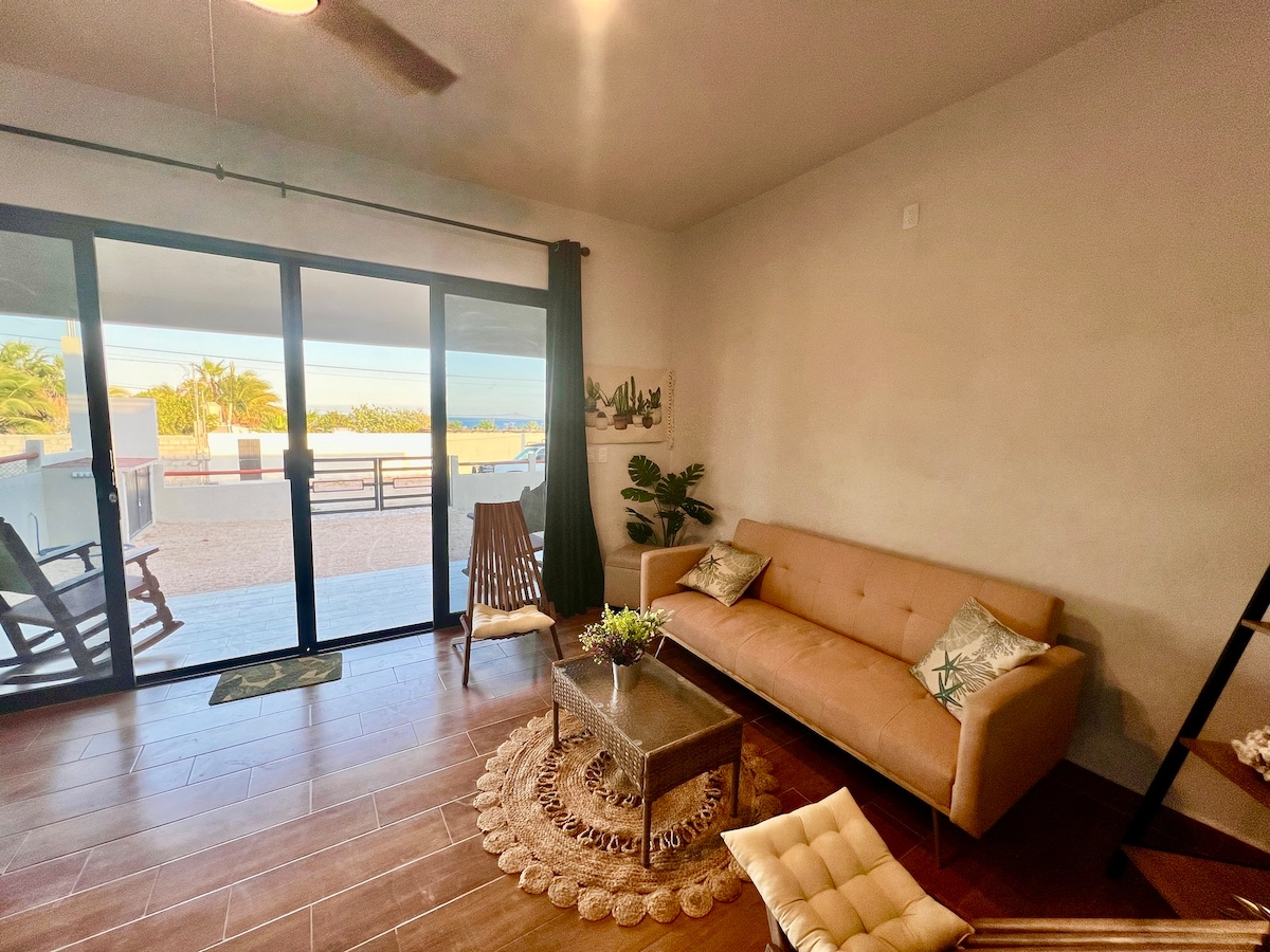 Palo Blanco es una habitación privada, luminosa y tranquila, ideal para descansar frente al mar. Cuenta con cama queen size, baño privado, aire acondicionado, frigobar, microondas y una barrita desayunador para mayor comodidad. Lo mejor: su gran ventanal con vista directa a la Isla Cerralvo y al mar. Perfecta para parejas o viajeros que buscan un espacio cómodo, fresco y con buena energía, a solo unos pasos de la playa.