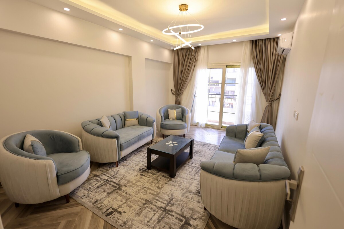 Moderni ja viihtyisä huoneisto lähellä pyramideja, korkea vedenpaine, lämmin vesi ja nopea WiFi. Paikallisten arabialaisten vieraiden tulee esittää voimassa oleva henkilötodistus ja avioliiton todistus ("Arousi" tai "Arefi") sisäänkirjautumisen yhteydessä. Ulkomaalaisten pariskuntien ei tarvitse toimittaa avioliittoa koskevia asiakirjoja. Noudata näitä sääntöjä, jotta majoittuminen sujuisi hyvin. Kiitos, odotan innolla majoittamistasi!