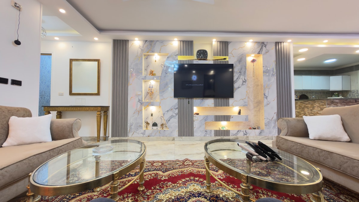Tyylikäs huoneisto lähellä pyramideja, täydellinen perheille tai mukavuutta etsiville henkilöille. Siinä on kaksi tilavaa olohuonetta, kolme makuuhuonetta, kaksi kylpyhuonetta ja ylellinen keittiö. Parvekkeelta on kaukainen näkymä Khufun suurelle pyramidille, mikä lisää ainutlaatuisen silauksen majoittumiseesi. Se on vain muutaman minuutin päässä pyramideista, ja se tarjoaa turvallisen ja mukavan kokemuksen
