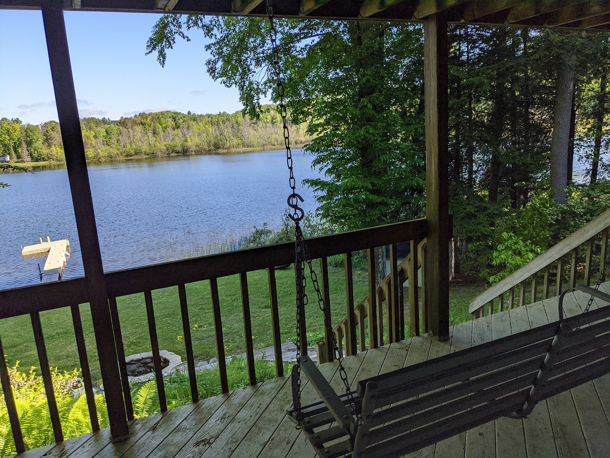 This cozy cabin, is tucked away on the lake in a small town of Ellsworth. Private single story cabin nestled into the woods with a beautiful hiking trail that leads you to the personal lake front, for swimming, kayaking and even ice fishing. Perfect cabin for a getaway or stay with your family. Incredible views of six mile lake, and just a small drive into town for activities to do like beach access cozy home town restaurants and fun for families. Nearby snowmobile trails, so bring your sled!