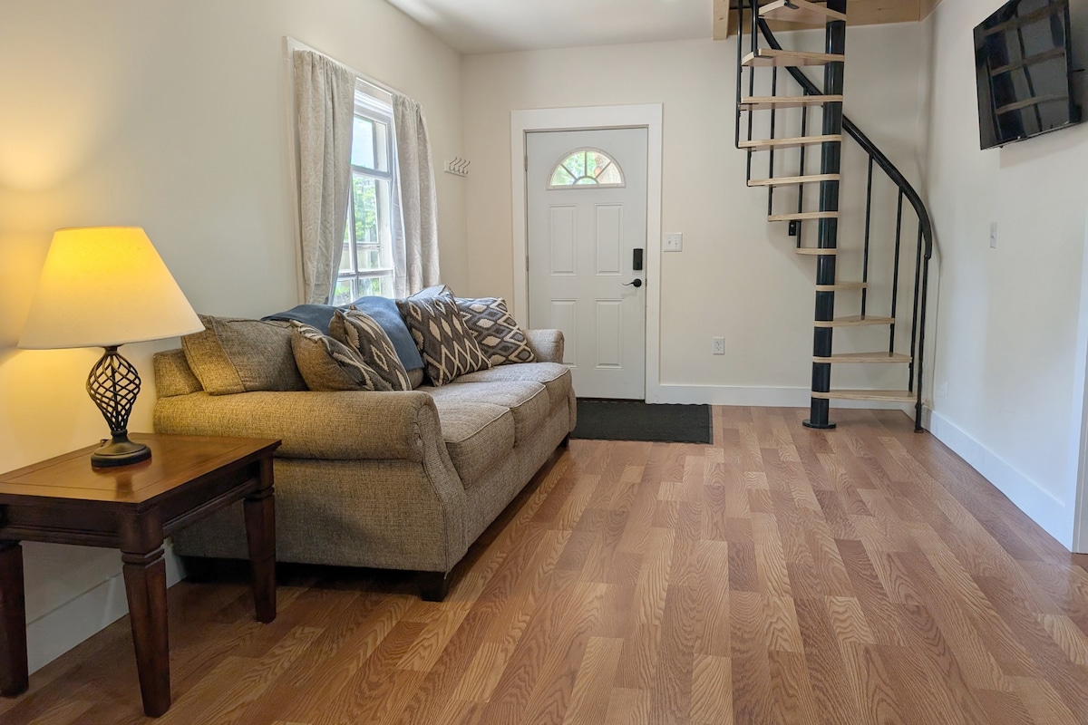Lily Pad on mukava yhden huoneen mökki, jossa on king-vuode ja kuisti, josta on näkymä lammelle. Yksityinen kylpyhuone on 30 askeleen päässä (liitetty kotiimme putkistoa varten, mutta sinulla on yksityinen sisäänkäynti). Päällystetty polku on hyvin valaistu. Mökki on eristetty, lämmitetty, ilmastoitu, siellä on sähkö, Wi-Fi ja älytv, jota voi käyttää omilla tileillä. Vapa-aito on saatavilla. Mökki on erotettu kodistamme autotallilla. Emme häiritse vieraita, elleivät he halua olla vuorovaikutuksessa tai tarvitse jotain.