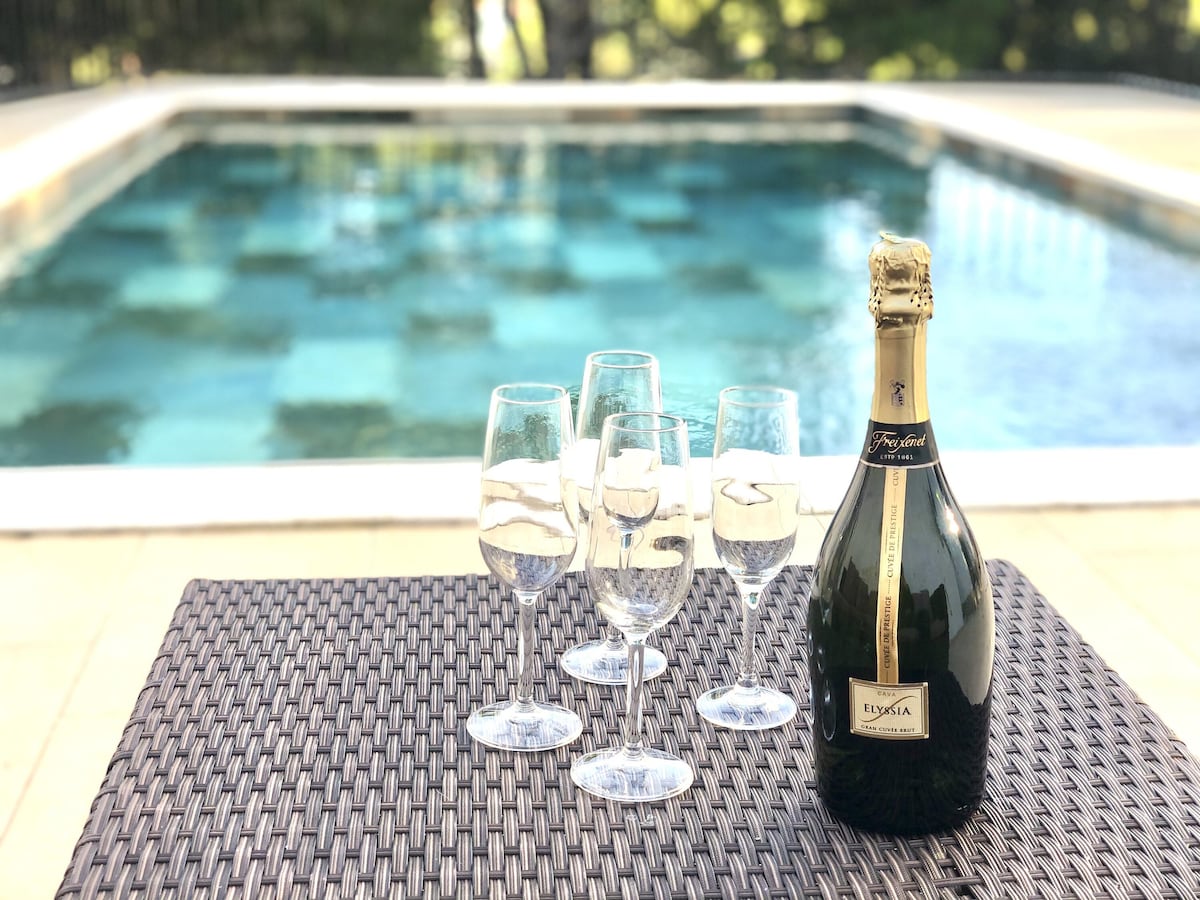 Kaunis talo, jossa on uima-allas, sijaitsee kuuluisan ja suositun Canyelles-poukaman korkeuksilla. Voit ihailla henkeäsalpaavaa ja rentouttavaa näkymää! Ranta on 3,4 minuutin kävelymatkan päässä! Superette a 200m. Prestations: - Yksityinen katettu autotalli - Erittäin mukava suola-allas + rullaluukku - Useita terasseja - 3 makuuhuonetta, joissa parivuode - 1 olohuone, jossa on clic clac-sohva - 1 SDB - 2 wc - Käännettävä ilmastointi - TV + WiFi - Varustettu keittiö - Pyykinpesukone - Ulkosuihku