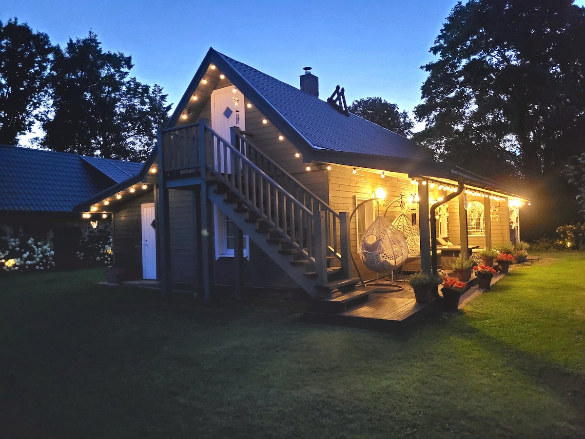 Vain 25 minuutin päässä vanhastakaupungista on hiljainen lepo kaupungin kehysten ulkopuolella. Siellä on mahdollisuus piiloutua jokapäiväisen elämän kiireeltä, kuunnella metsän ja lintujen ääniä, rentoutua kylvyssä, josta on näkymä luontoon, tuijottaa tähtiä palkkista, nauttia rauhallisen aamiaisen tilavalla terassilla tai lukea kirjaa nukkuvassa. Huoneistoissa on myös grilli, täysin varustettu keittiö, takka terassilla, takka ja lämpöpumppu mukavuuden ystäville. Lielupen uimapaikka 800m. Jūrmala 10 km.