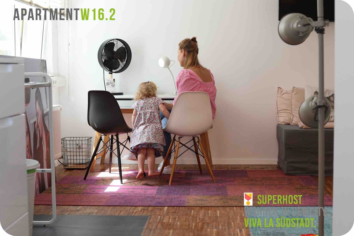 Etsitkö tyylikästä huoneistoa pienellä rahalla? Lähellä kaupunkia ja hotellityylistä palvelua? Sitten tunnet olosi kotoisaksi tässä huoneistossa Karlsruhen Oststadtin alueella! Huoneistossa on täysin varustettu 1,40 metrin vuode ja kuntosali rakennuksessa. ➤ Ympärivuorokautinen itsepalvelusisäänkirjautuminen PIN-koodilla ➤ Täysin varustettu keittiö + Nespresso-kone ja kahvila ➤ Nopea WLAN (>100 Mt/s) ➤ Ultra-HD 4K -televisio Netflixillä ➤ Moderni retrohenkinen design ➤ Terassi ➤ Rentouttava sadesuihku ➤ Maanalainen pysäköintihalli