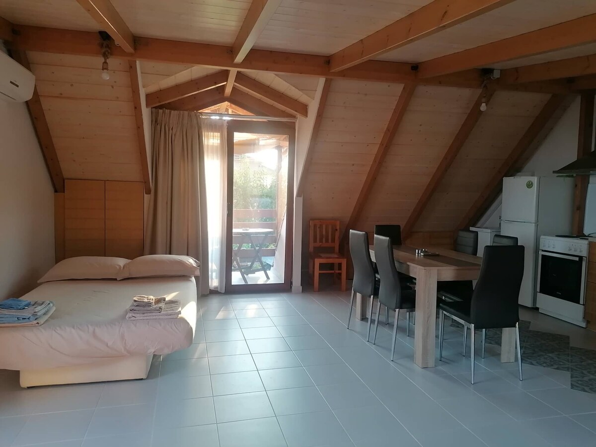Vain muutaman askeleen päässä Joonianmereltä sijaitseva merenrantahuoneistomme tarjoaa mukavuutta, rauhaa ja upeat näkymät. Kohteemme toisessa kerroksessa sijaitsevassa valoisassa ja ilmavassa tilassa on yksi parivuode ja vuodesohva — täydellinen pariskunnille tai pienille perheille. Nauti henkeäsalpaavista auringonlaskuista ja panoraamanäkymistä merelle sekä Joonianmerelle että Lefkadan kaupunkiin. Huoneisto tarjoaa rauhallisen ja rentouttavan ilmapiirin — ihanteellinen lukemiseen, rentoutumiseen tai yksinkertaisesti rannikon kauneuden nauttimiseen.