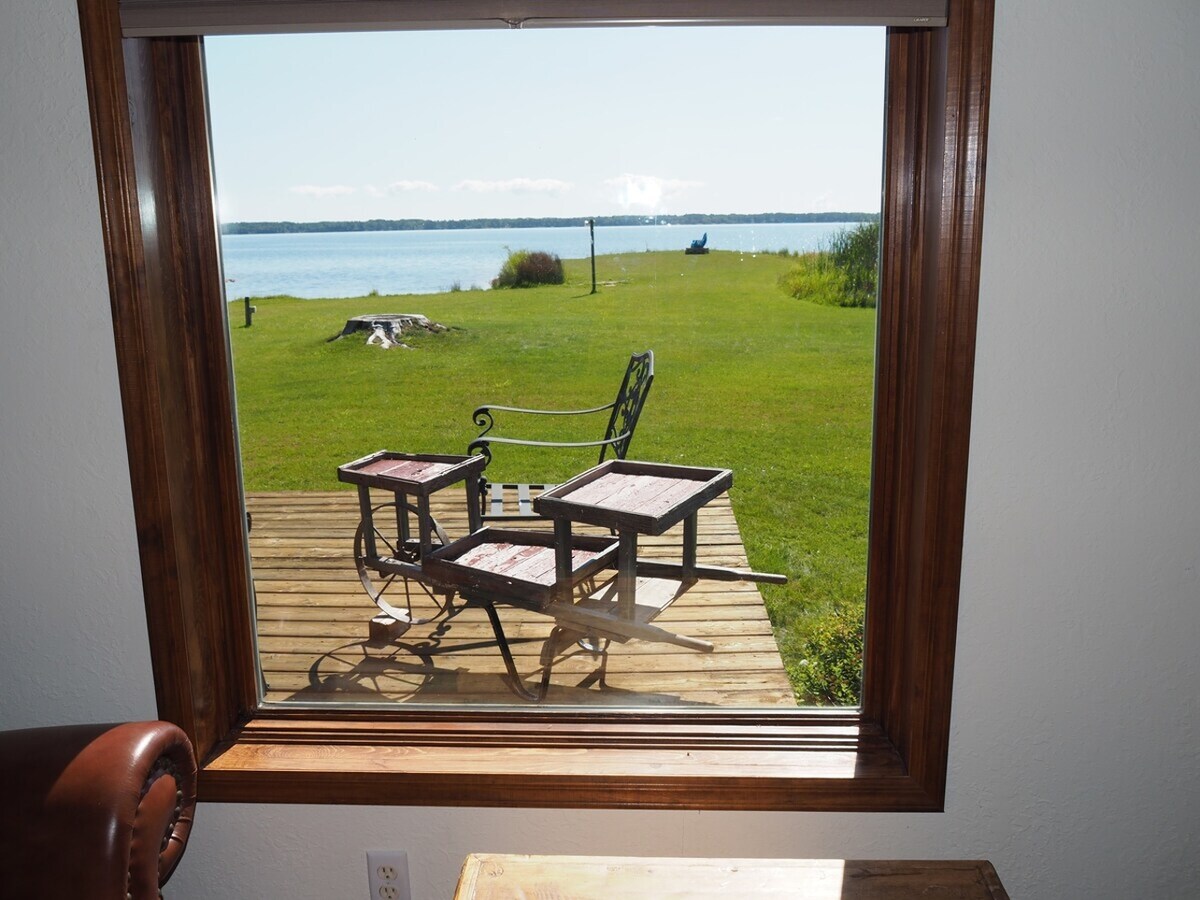 Tämä upea 371 neliömetrin lomakohde sijaitsee Michigan-järven Little Bay De Nocin rannalla. Ruokaile laajalla ulkoterassilla, kokoontukaa nuotiopaikan ympärille, ota kajakki kierrokselle tai nauti vain järven panoraamanäkymistä. Tässä lomakohteessa on neljätoista vuodetta, kahdeksan vuodetta, ulosvedettävä queen-vuoteen sohva ja kolme futonia. Älytelevisiot, pyykinpesukone/kuivausrumpu, täysin varusteltu keittiö, Keurig-kahvinkeitin, haudutuspata, tehosekoitin, kaasugrilli, kajakit, pingispöytä lämpiminä kuukausina ja kuntoiluvälineet.