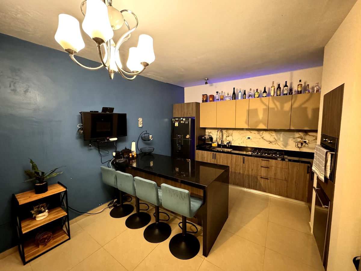 Nauti tilavasta, modernista ja täydellisellä paikalla sijaitsevasta huoneistosta. Se on ihanteellinen valinta perheille, ryhmille, liikematkailijoille tai niille, jotka etsivät mukavuutta ja turvallisuutta majoittuessaan Monterreyssä ja Guadalupessa. Alue on hiljainen ja turvallinen, ja sieltä pääsee nopeasti pääkaduille, ostoskeskuksiin, ravintoloihin ja tärkeisiin paikkoihin, kuten BBVA-stadionille, Parque Fundidoraan, Arena Monterreyhin, Cintermexiin ja La Fehen. Täydellinen rentoutumiseen, työskentelyyn tai kaupunkiin tutustumiseen. On ilo toivottaa sinut tervetulleeksi.