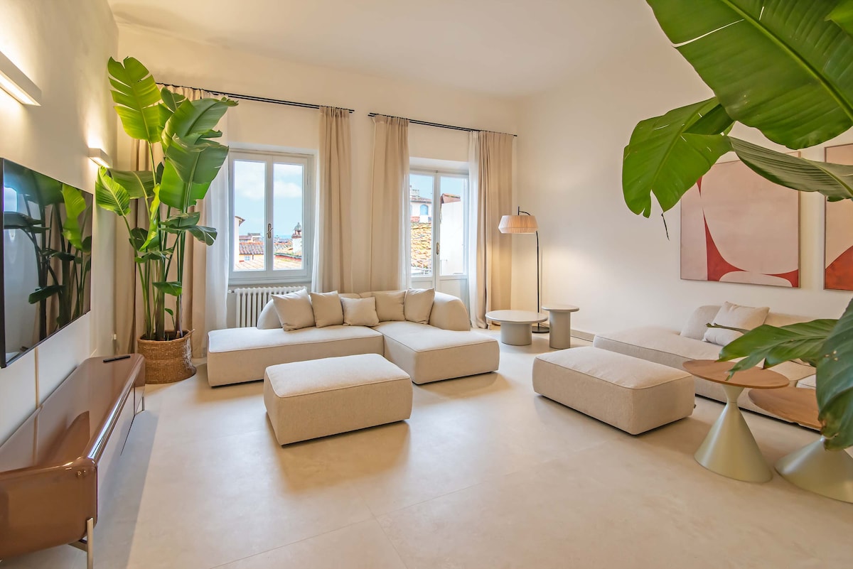 Bright and spacious apartment, thoughtfully designed with a modern, minimalist style—perfect for couples, families, or groups of friends. Enjoy fast Wi-Fi and air conditioning throughout your stay. The ideal place to experience Florence in comfort and elegance, and even to host a special occasion, from a private dinner to a romantic candlelight experience.