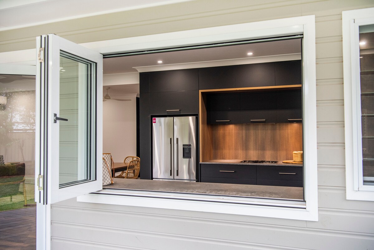 Tervetuloa BLACK SHEDiin, joka on arkkitehtonisesti suunniteltu ainutlaatuinen kiinteistö, jossa on huippuluokan varustelu. Sisätiloissa on perinteiset puurungon palkit, jotka antavat maalaismaisen ja ylellisen tunnelman. Esillä Good Weekend -oppaassa. Sopii ihanteellisesti kahdelle pariskunnalle tai neljän hengen perheelle, ja siellä voi nukkua 4–5 vierasta. (OK, jos sinulla on 3 lasta, mutta vuodejärjestelyt eivät sovi 5 aikuiselle). Sohvalla voi helposti nukkua 1 ylimääräinen henkilö. Majoituksessa on 2 makuuhuonetta ja 2 kylpyhuonetta, suuri avoin olohuone, ruokailutila, keittiö ja terassi.