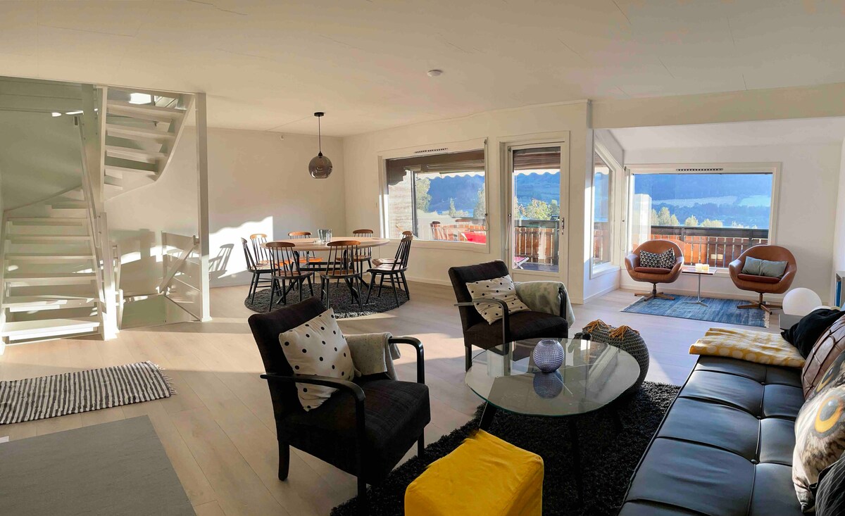 Maatila sijaitsee noin 10 km:n päässä Lillehammerin keskustasta (ei kävelyetäisyydellä), ja sieltä on upeat näkymät Lillehammerin eteläosaan. Huoneisto on päärakennuksen ylimmässä kerroksessa, ja siinä on 1 makuuhuone, jossa on parivuode, 1 makuuhuone, jossa on kerrossänky, 1 kylpyhuone, hyvin varusteltu keittiö, ruokailuhuone, jossa on makuualkovi, ja suuri olohuone, jossa osa tilasta voidaan muuntaa makuualkoviksi. Puutarhaa ja ulkoaluetta voi hyödyntää. Meillä on 6 kanaa ja 2 kissaa.