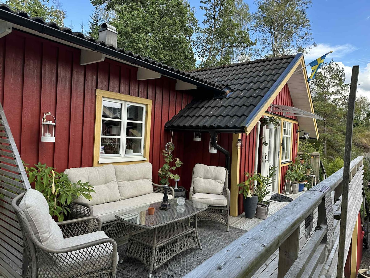 Viihtyisä mökki lähellä järveä ja metsää Dalslandissa