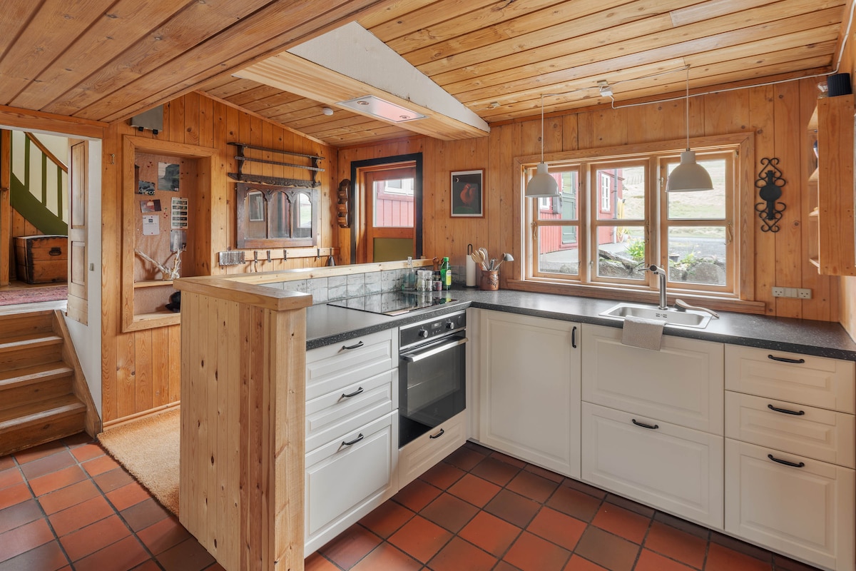Vanha ja ihana maatilamme sijaitsee aivan Tórshavnin ulkopuolella rauhallisessa laaksossa lähellä jokea. Kaksikerroksisessa talossa on kaksi kylpyhuonetta, kolme makuuhuonetta, täysin toimiva keittiö ja useita viihtyisiä olohuoneita. Lisäksi siellä on suuri puutarha ja kaksi patioa. Paikka on täydellinen niille, jotka haluavat olla ulkona luonnossa, mutta myös lähellä kaupunkia. Talo lämmitetään maaperälämmityksellä, ja meillä on laturi sähköautoille.