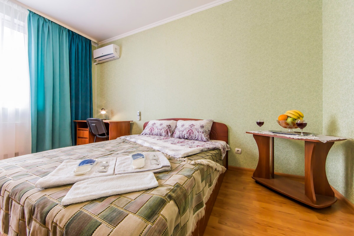 Сучасні апартаменти-студії з новим дизайнерським ремонтом у стильних сіро-жовтих тонах створюють атмосферу затишку та комфорту. У студії є велике ліжко з ортопедичним матрацом, кондиціонер, телевізор, швидкісний Wi-Fi, повністю укомплектована кухня та сучасна душова кімната. Ідеальний варіант для комфортного відпочинку після насиченого дня — як для подорожей, так і для тривалого проживання.