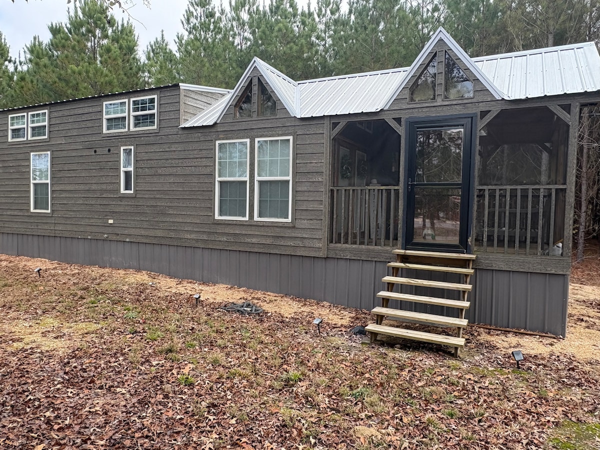 Cozy cabin-style tiny home just outside Fayette, a mile north of Walmart and right off the highway. Located across from Country Junction for quick convenience. Enjoy a comfy bedroom, loft bed, full kitchen, full bath, WiFi, TVs, and a washer/dryer. Relax on the screened-in porch and take in the quiet country feel while staying close to town. A peaceful, simple retreat with all the comforts of home.