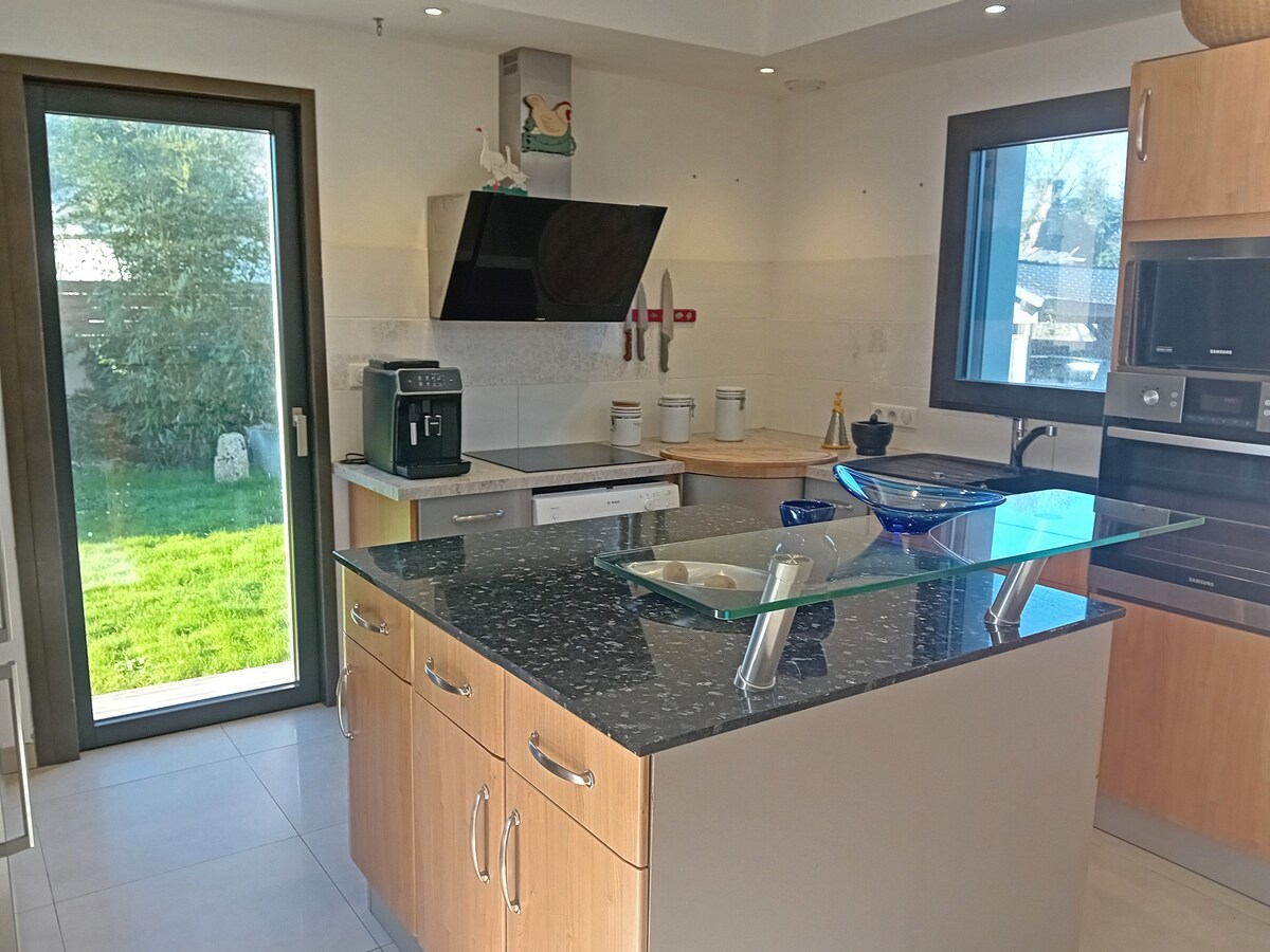 Etelä-Morbihanissa, 10 minuutin päässä rannoista ja 5 minuutin kävelymatkan päässä Férelin kylästä ja sen kaupoista, voit rentoutua tässä rauhallisessa ja tyylikkäässä majoituksessa meren ja maaseudun välissä, lähellä vaellusreittejä. Yksi kerros, erittäin valoisa ja luontoon yhteydessä, modernit laitteet, äly-tv, valokuitu, ilmastointi, terassi, puutarha. Leijalautailupaikka 20 minuutin päässä, 4 km:n päässä La Roche-Bernardista. Uudet laadukkaat vuodevaatteet.