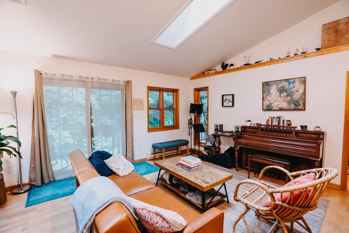 Luova turvapaikkasi: rauhallinen 2 vuoteen mökki 6 yksityisellä metsäisellä hehtaarilla. Se on suunniteltu auttamaan sinua irrottautumaan arjesta. Television sijasta täällä on taidetarvikkeita ja -välineitä mielikuvituksesi käyttöön. Soita levyjä vinyylillä/Bluetooth-kaiuttimella. Lue takan äärellä. Anna keittiön inspiroida leivontaan. Tutustu Huron-järveen tai vaella ja tarkkaile lintuja Port Crescentin valtionpuistossa. Iltaisin voi katsella tähtiä metsässä. Viimeisen rentoutumisen aikana voit parantaa majoittumistasi vuokraamalla liikkuvan saunan. Lähetä meille viesti, kun luovuutesi on huipussaan.