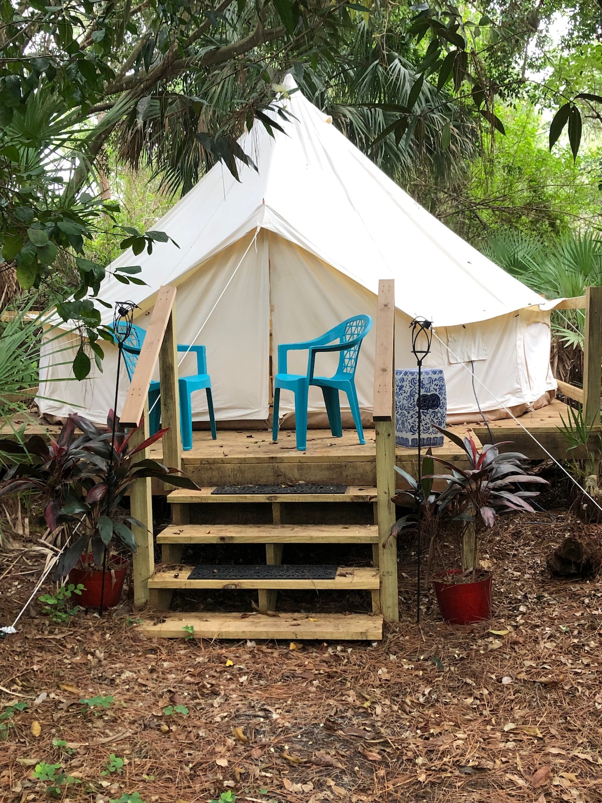 Rentoudu Serenity Acresissa, yksityisessä glamping-retriitissäsi, joka sijaitsee 10 eekkerin metsien ja peltojen keskellä. Nauti Floridan viileistä öistä nuotion ääressä ja lämpimistä aurinkoisista päivistä. Tilava 20 jalan kelloteltta tarjoaa kaikki kodin mukavuudet, mukaan lukien pehmeän king-size-vuoteen, viihtyisän oleskelualueen, ilmastoinnin ja lämmön. Kohteessa on täysin varusteltu kylpyhuone vain telttavieraiden henkilökohtaiseen käyttöösi. Suihkussa kuun alla rajoittamattomasti kuumaa vettä! Rentoudu nuotion äärellä kirkkaiden maaseudun tähtien alla!