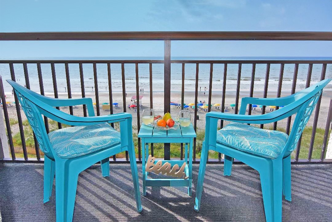 The 5th floor oceanfront condo has a large private terrace and will sleep 4 with 2 full size beds in the bedroom. YksikössÀ on tÀysin varustettu keittiö, jossa on kaikki uudet laitteet, leivÀnpaahdin, kahvinkeitin ja kaikki tarvitsemasi vÀlineet ja ruoanlaittovÀlineet. Kaikki liinavaatteet ja pyyhkeet ovat kÀytettÀvissÀsi. MeillÀ on rantatuoleja ja leluja, pelejÀ ja ilmainen WiFi. Avaimettoman sisÀÀnkÀynnin avulla voit ohittaa pitkÀt sisÀÀnkirjautumisjonot. Mene vain suoraan yksikköön ja aloita lomasi!