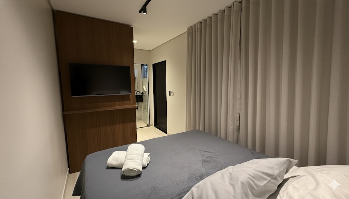Apto203 Conforto e Localização em Formosa-GO Aconchegante, funcional e muito bem localizado! Nosso apê fica a 500m da UNIRV, IESGO, Hospital Regional, SAMU, Fórum, OAB, Supermercados Dia a Dia e Atacadão, além do Restaurante Mediterranium Gastronomia Internacional Ideal para trabalho, estudo ou descanso, o apartamento é completo e recém-decorado. São 2 quartos (1 suíte com ar-condicionado), 2 banheiros, sala com sofá-cama e TV, cozinha equipada e Wi-Fi rápido. Acomoda até 4 pessoas com conforto.