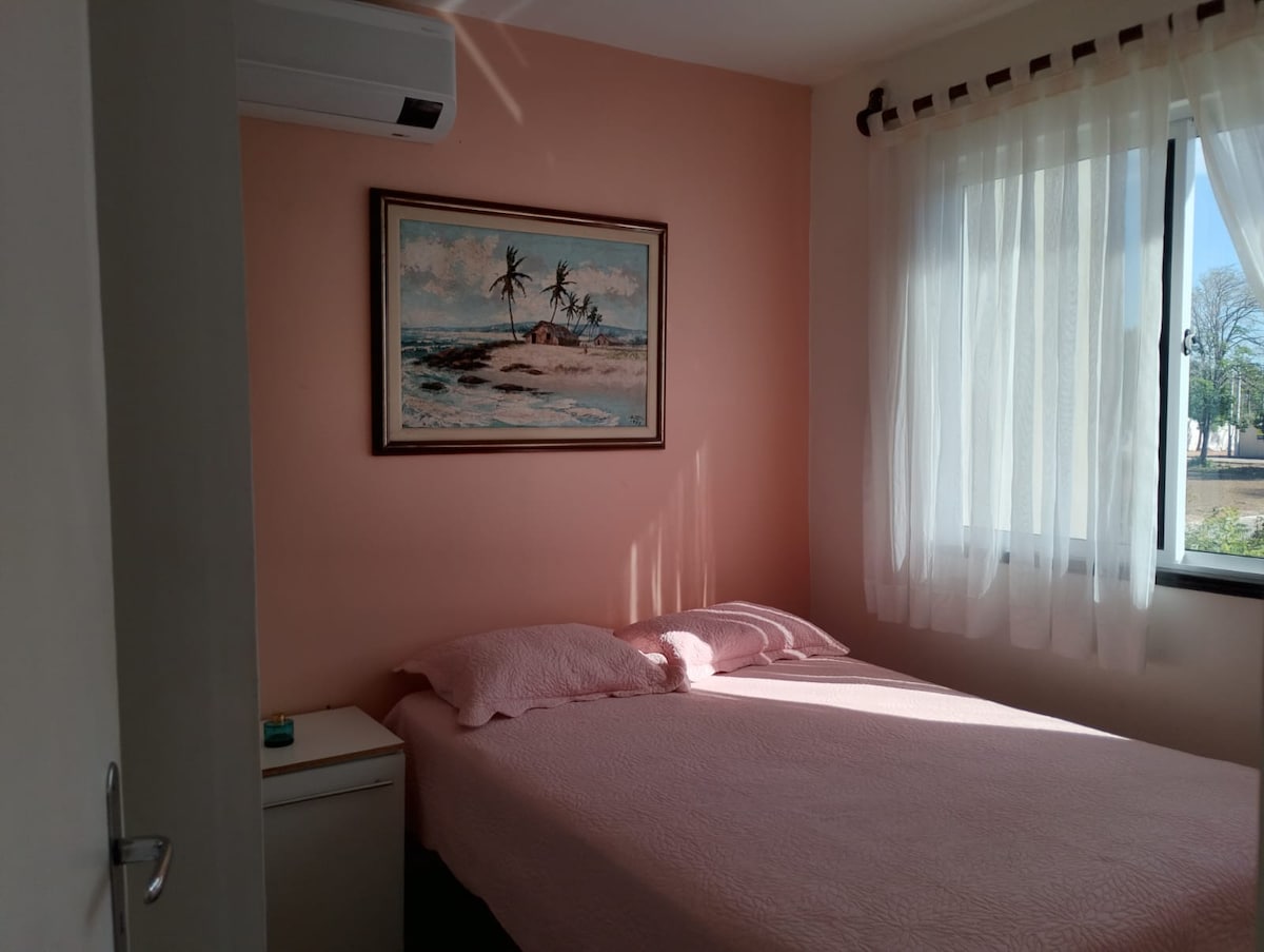 Apartamento 1° andar, wifi, condomínio fechado , piscina na área comum, porteiro 24h, cozinha com utensílios, 02 quartos, 02 banheiros. Ventilado e vista pro mar. Não locamos quartos compartilhados. Localizações: a 3,4 km do Beach Park, a 970m da praia. Garagem coberta para 1 carro. Arcondinado na suíte. Chuveiro elétrico na suite. Ventilador no outro quarto.
