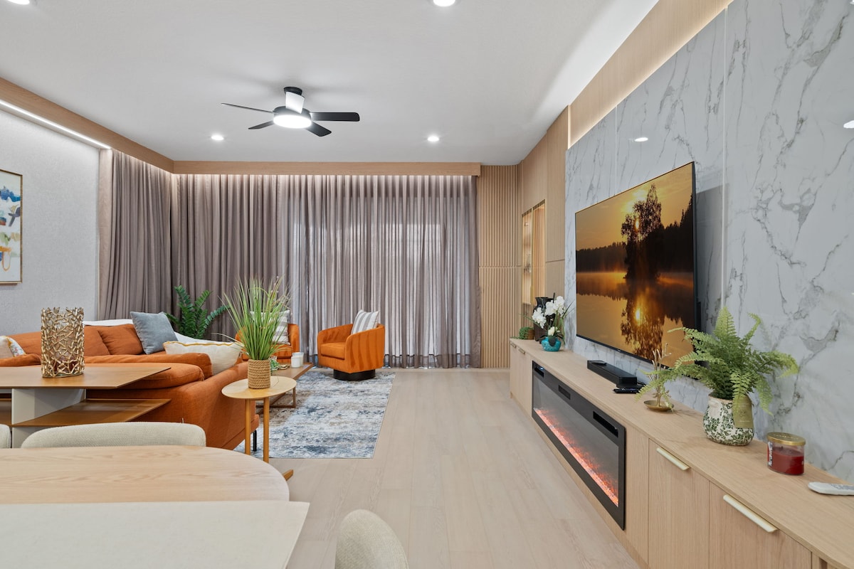 Tervetuloa täydelliseen Orlandon retriittiin! Tämä kaunis ja tilava kohde tarjoaa yhdistelmän modernia mukavuutta, tyylikästä tyyliä ja poikkeuksellisia mukavuuksia – kaikki vain muutaman minuutin päässä parhaista puistoista ja nähtävyyksistä. Nauti yksityisestä, suojatusta uima-altaasta, tyylikkäistä sisätiloista ja harkiten suunnitelluista tiloista, jotka sopivat erinomaisesti perheille, ryhmille tai pitkäaikaisiin majoittumisiin. Jokainen yksityiskohta on valittu huolellisesti, jotta voimme tarjota mukavuutta, rentoutumista ja unohtumattoman lomakokemuksen.