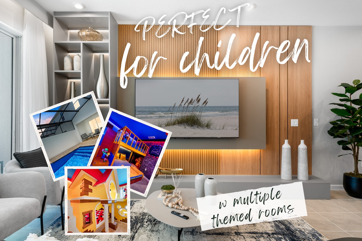 Hauska 5 makuuhuoneen Disney-huvila: uima-allas, pelejä ja ilmainen pääsy lomakeskukseen