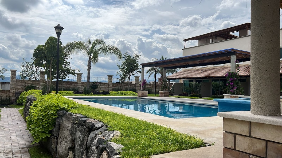Ihana talo 5 000 neliömetrin tontilla, lämmitetty uima-allas, aurinko ympäri vuoden, yksityisellä alueella, jossa on hyvä turvallisuus. 5 minuuttia Tec de Mteystä, 2 minuuttia Puerta de Aguan hääpuutarhasta ja 10 minuuttia monista muista tapahtumapuutarhoista. 5 makuuhuonetta, 4 1/2 kylpyhuonetta, paratiisimaiset puutarhat, herkullinen uima-allas, jossa on portaali, minibaari ja kaasugrilli. Ihanteellinen perheille, jotka haluavat viettää aikaa yhdessä ja viettää unohtumattoman viikonlopun tai loman, ja/tai niille, jotka ovat menossa lähistöllä järjestettäviin häihin.